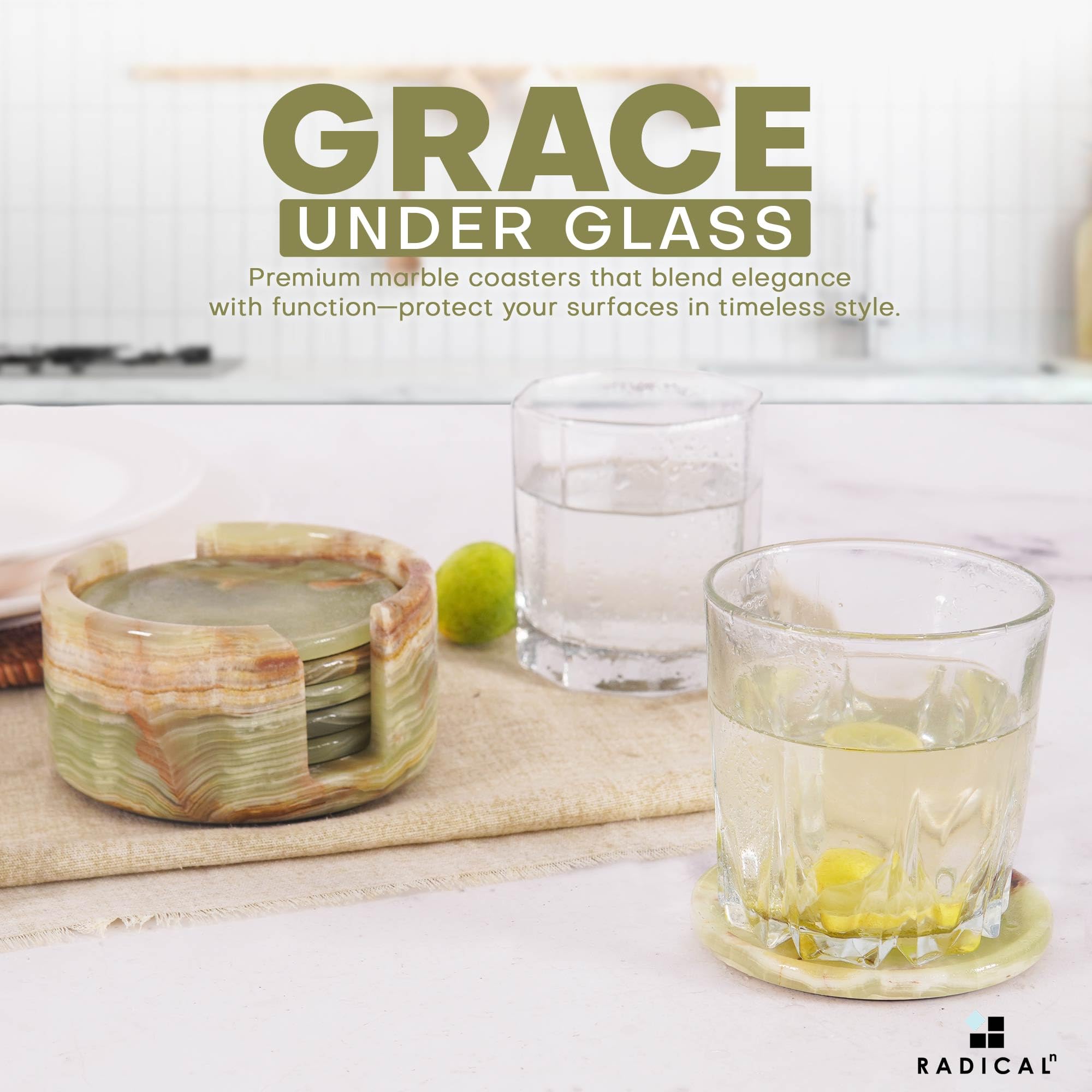 -8%Radicaln Green Onyx Marble Coasters Set of 6 Handmade 3.5" Inch Round Coasters for Drinks, Coaster Set with Holder for Dining Tables—
