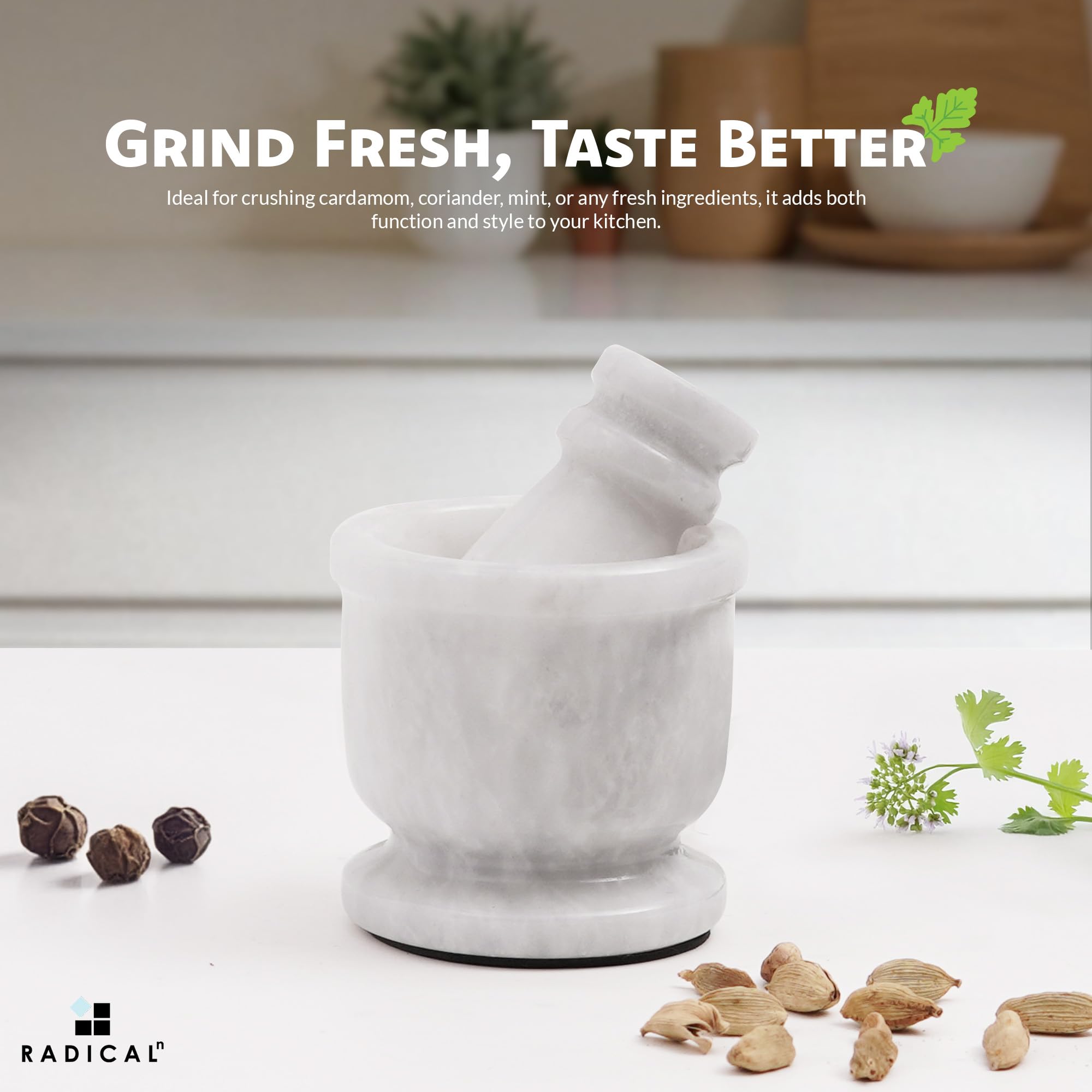 Radicaln Marble Mortar and Pestle Set White 2.5" Inches Handmade Hand Grinder for Kitchen, Ideal Small Mortar & Pestle Set for Spice Grinder & Garlic Crusher