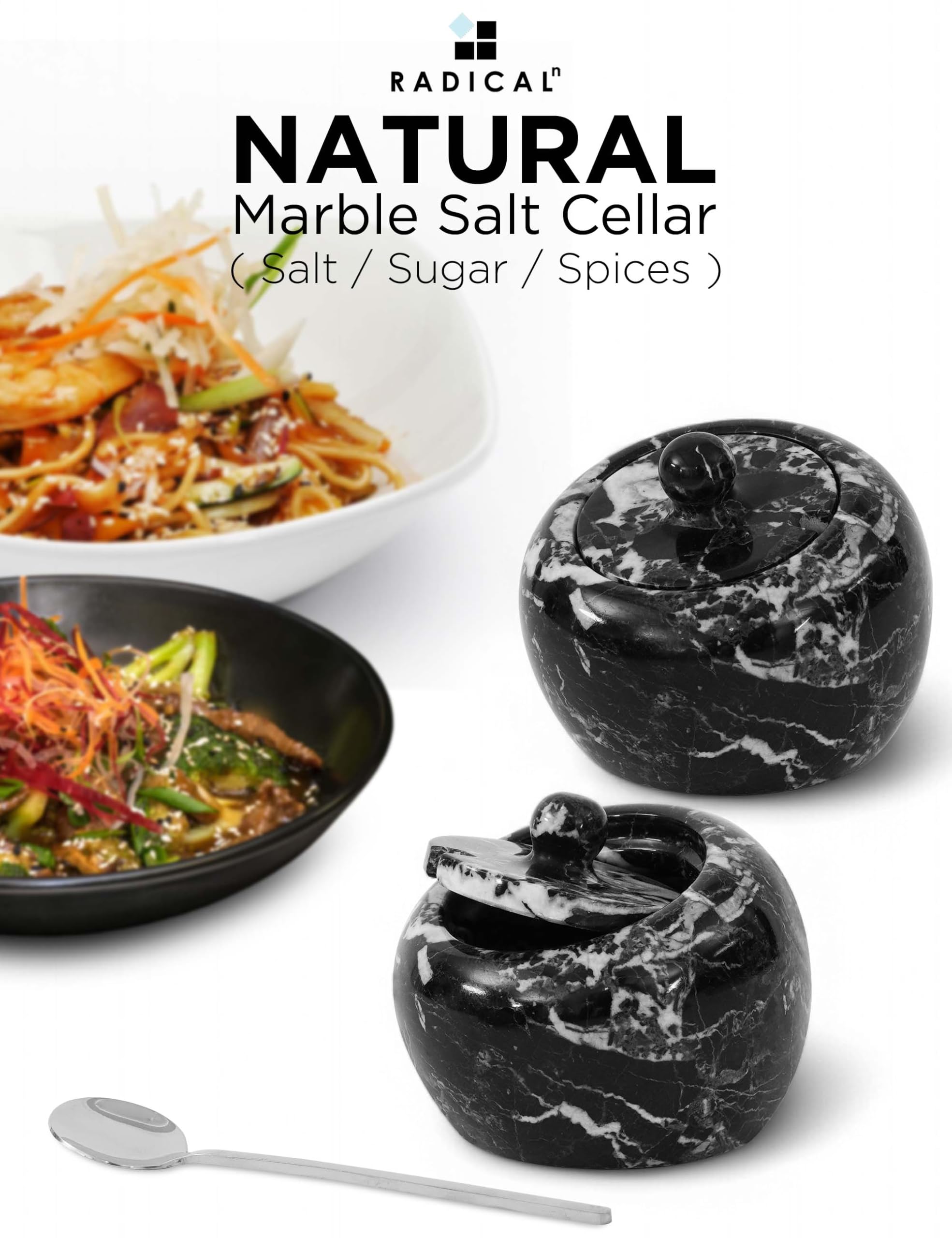 Radicaln Marble Salt Cellar with Lid 4" Inch Black Table Salt Container & Sugar Bowl For Kitchen Countertop, Ideal Salt Dish & Salt Jar for Celtic Salts