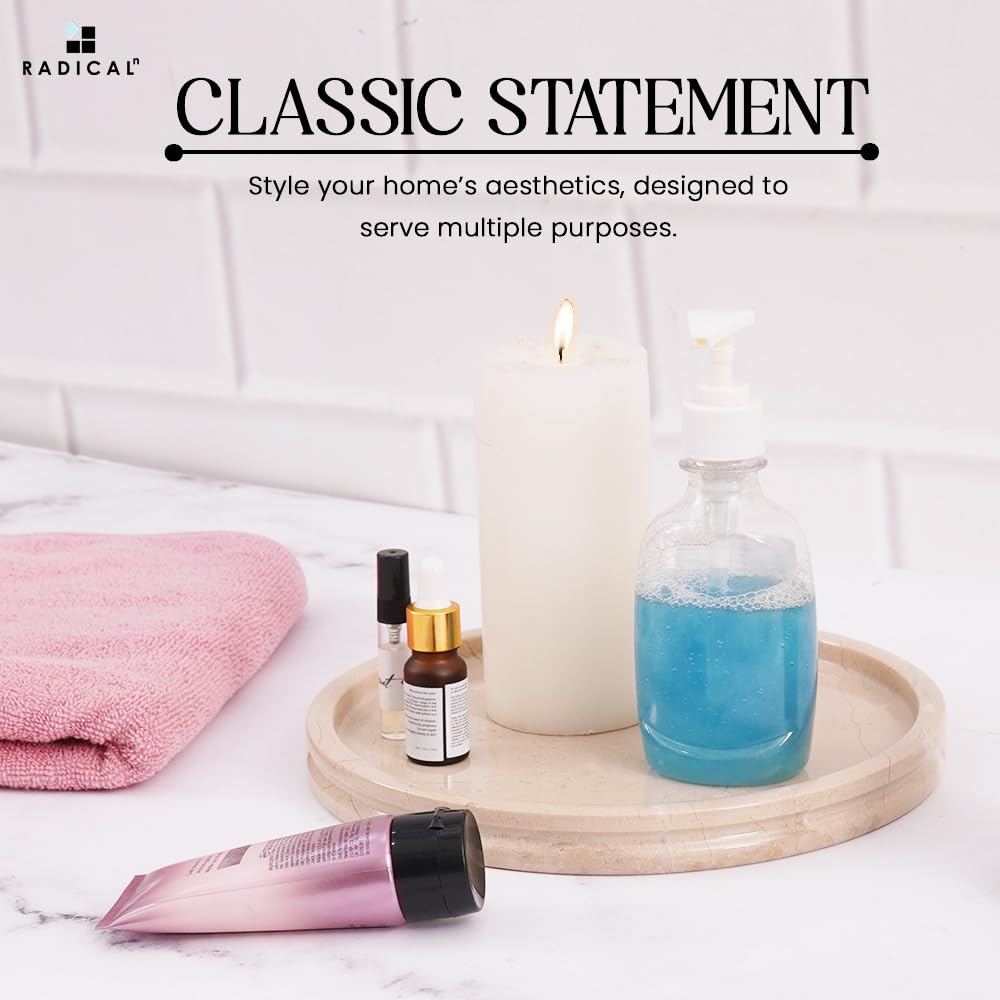 Radicaln Marble Serving Tray 10" Inches Verona Handmade Round Tray for Party Supplies Modern Serving Bowl & Candle Dish for Party, Cafeteria Trays & Candle Plate for Serving Food