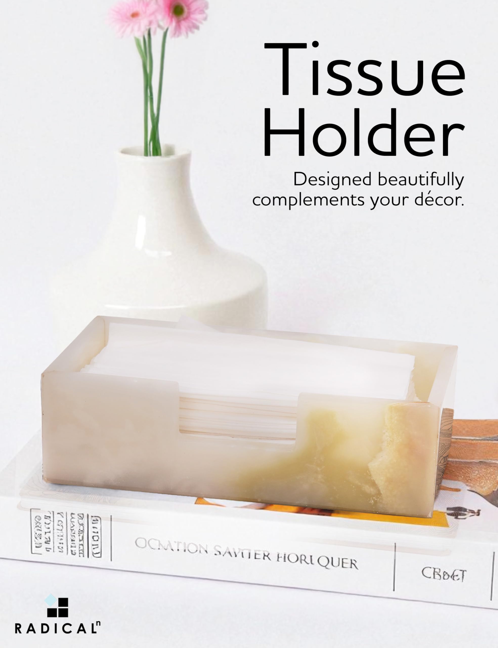- MARBLE TISSUE BOX COVER - Includes 1x marble tissue box holder. Thoughtfully presented in RADICALn secure, fragile-ready packaging to help your piece arrive protected and ready to place in your curated space.