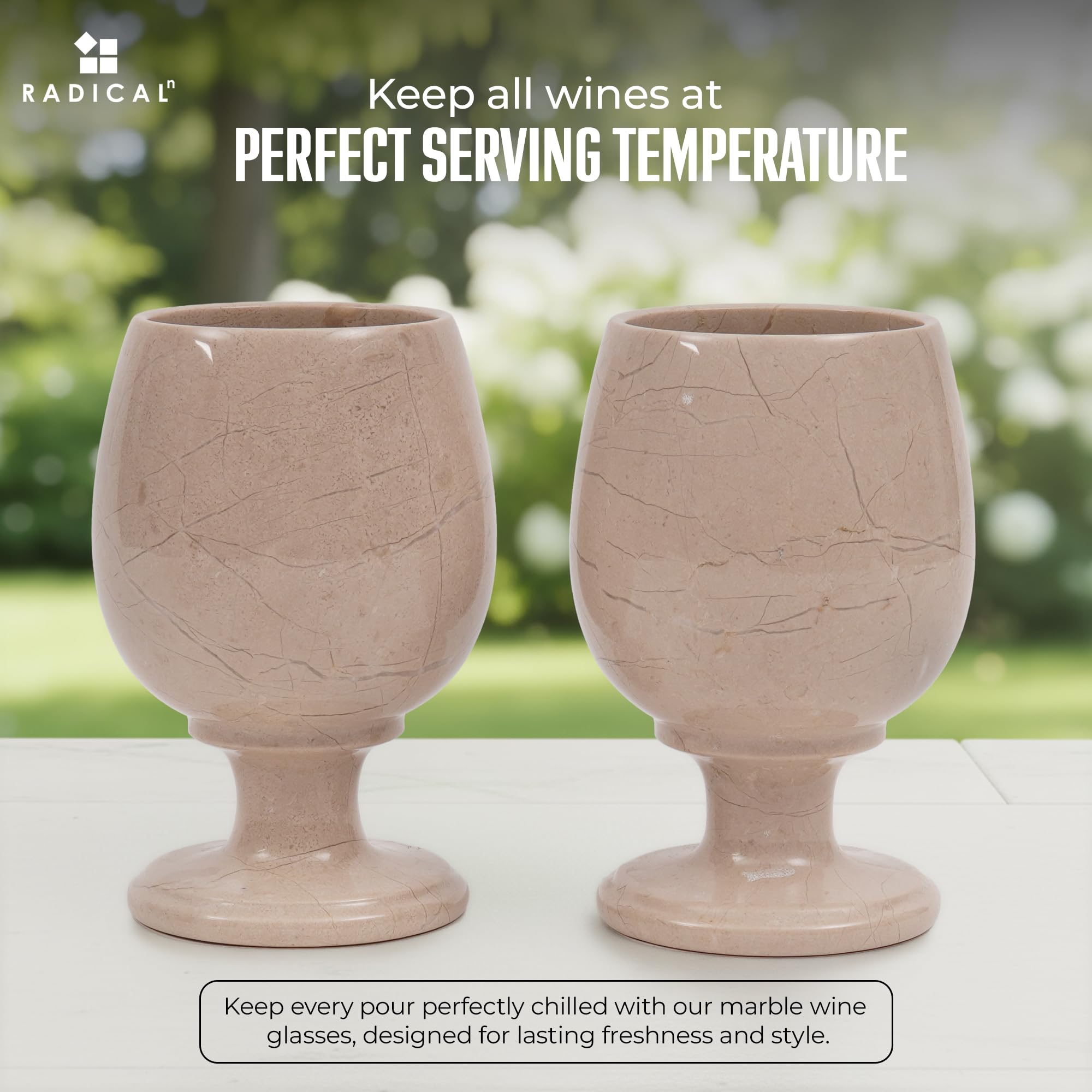 Radicaln Marble Wine Glasses Set of 2 Handmade Verona 5" Inch Drinking Glasses For Dining Table Décor, Ideal Red and White Wine Glassware For Home Décor—