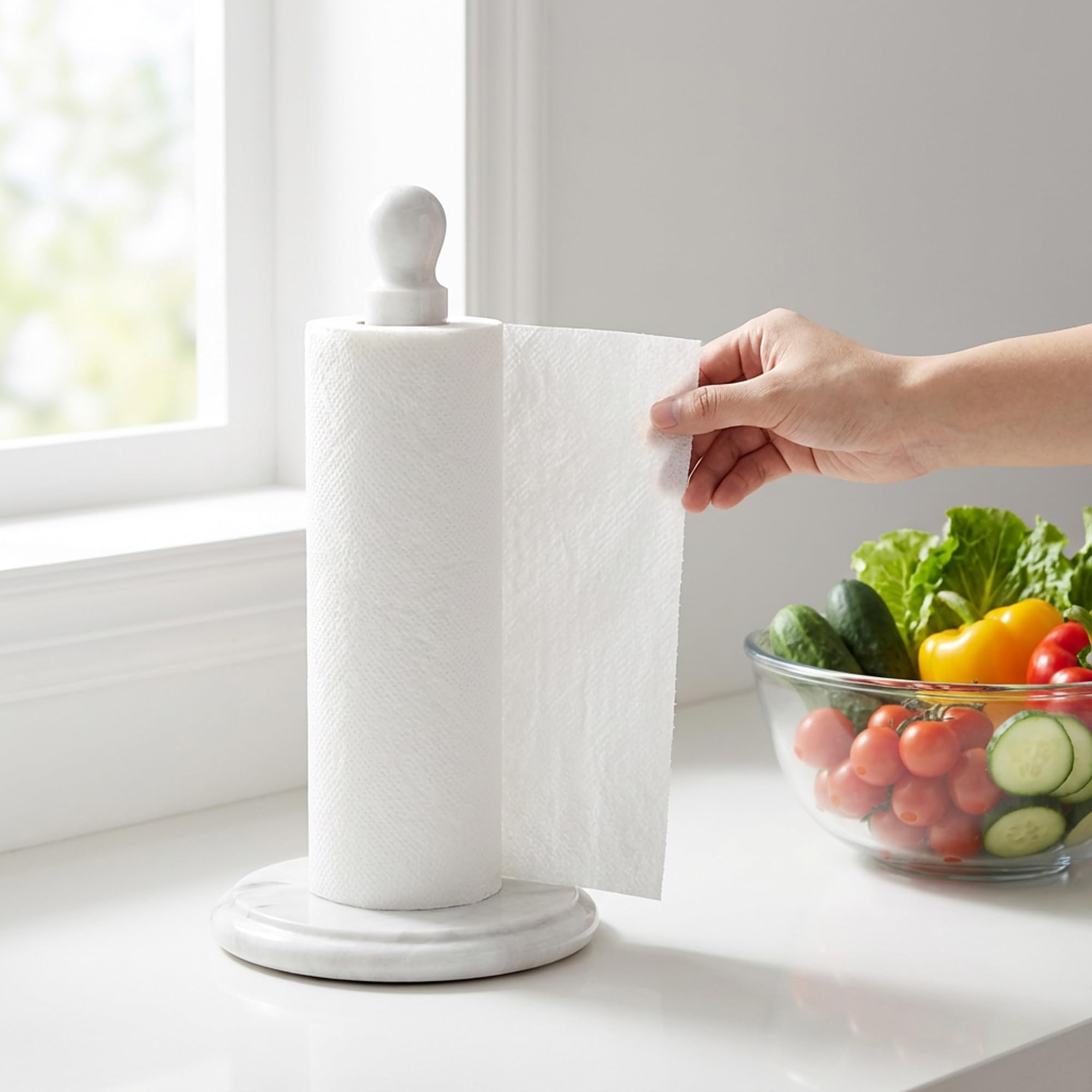 - ELEVATES EVERYDAY COUNTERTOP STYLE: Crafted from solid natural marble with subtle variations in veining, this decorative paper towel holder brings a refined, high-end look to your bathroom décor or kitchen counter while offering a sturdy, weighty base that feels luxuriously substantial in daily use.